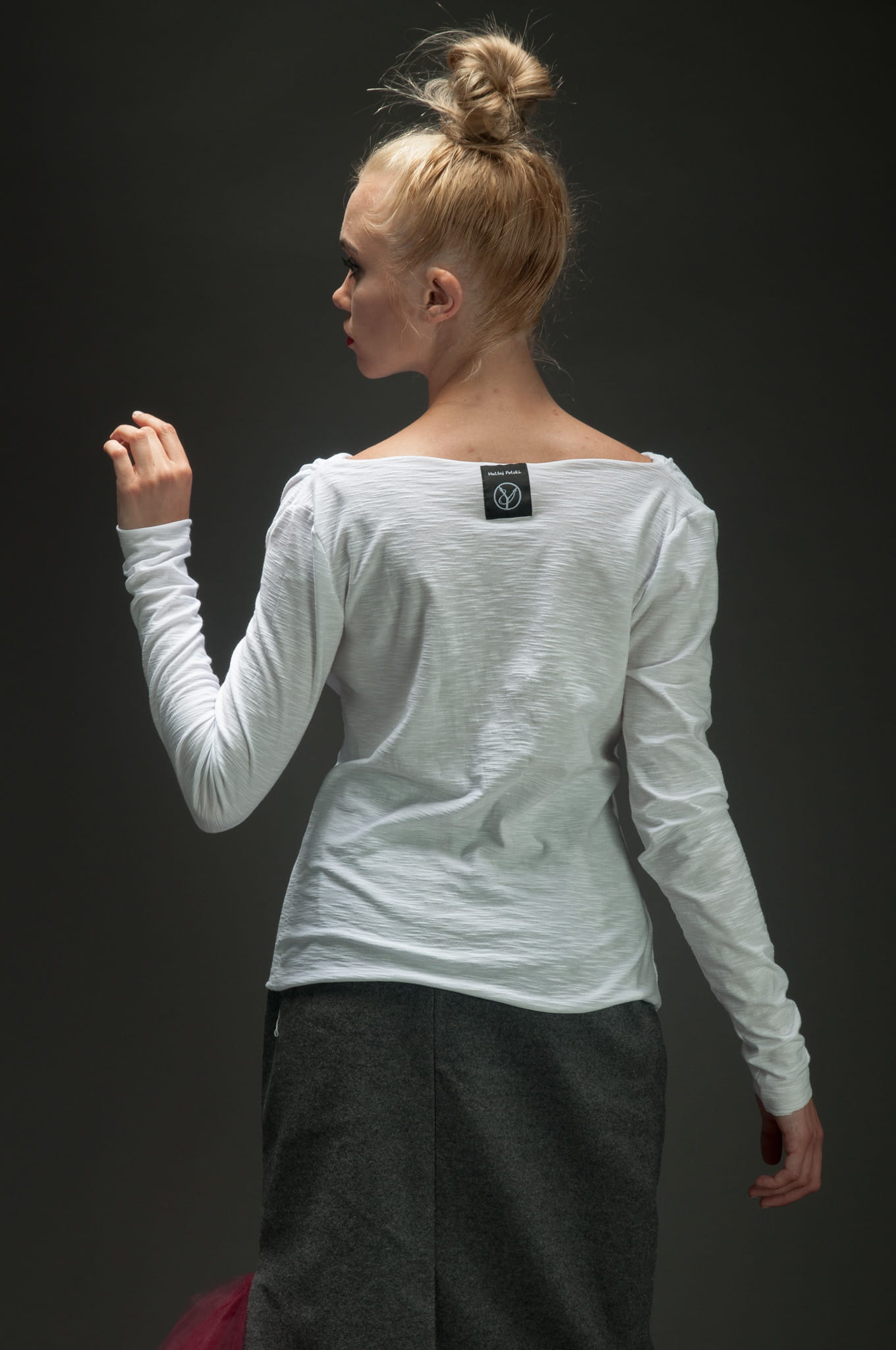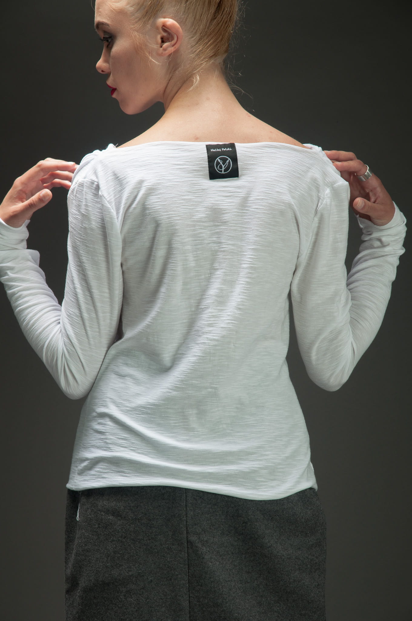 Biała bluzka bawełniana z długim rękawem.