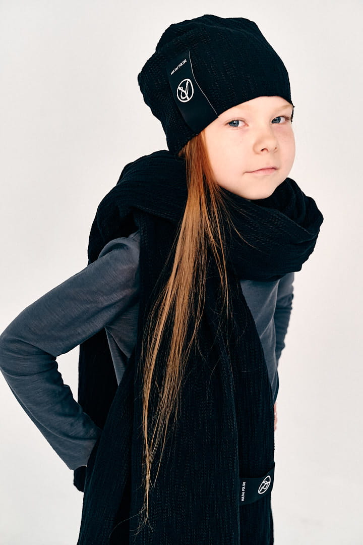 Ciepła czapka dziecięca typu beanie z dzianiny w kolorze czarnym