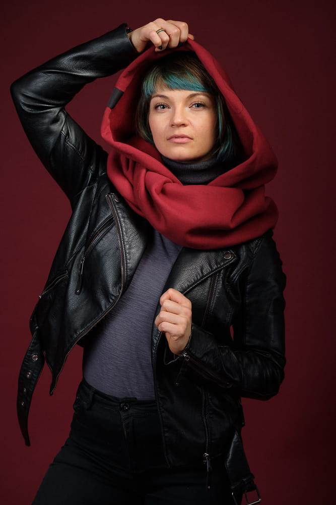 Kaptur Incognito łączy modny design z praktycznym zastosowaniem – idealny dla każdej stylowej Hultajki. Ten uniwersalny, jednorozmiarowy model, odpowiedni także dla mężczyzn, powstał z miękkiej dzianiny bawełnianej (92% bawełna, 8% elastan, gramatura 320 g/m²), z grafitowym golfem zapewniającym ciepło w mroźne dni. Ten ciepły kaptur damski sprawdza się przez wszystkie pory roku – zimą osłania przed wiatrem i chłodem, a latem chroni podczas chłodnych nocy, idealnie współgrając z casualowymi outfitami. Głęboki bordowy kolor nadaje mu szykownego wyglądu, a elastyczna struktura gwarantuje wygodę, zwłaszcza dla kobiet z gęstymi włosami.