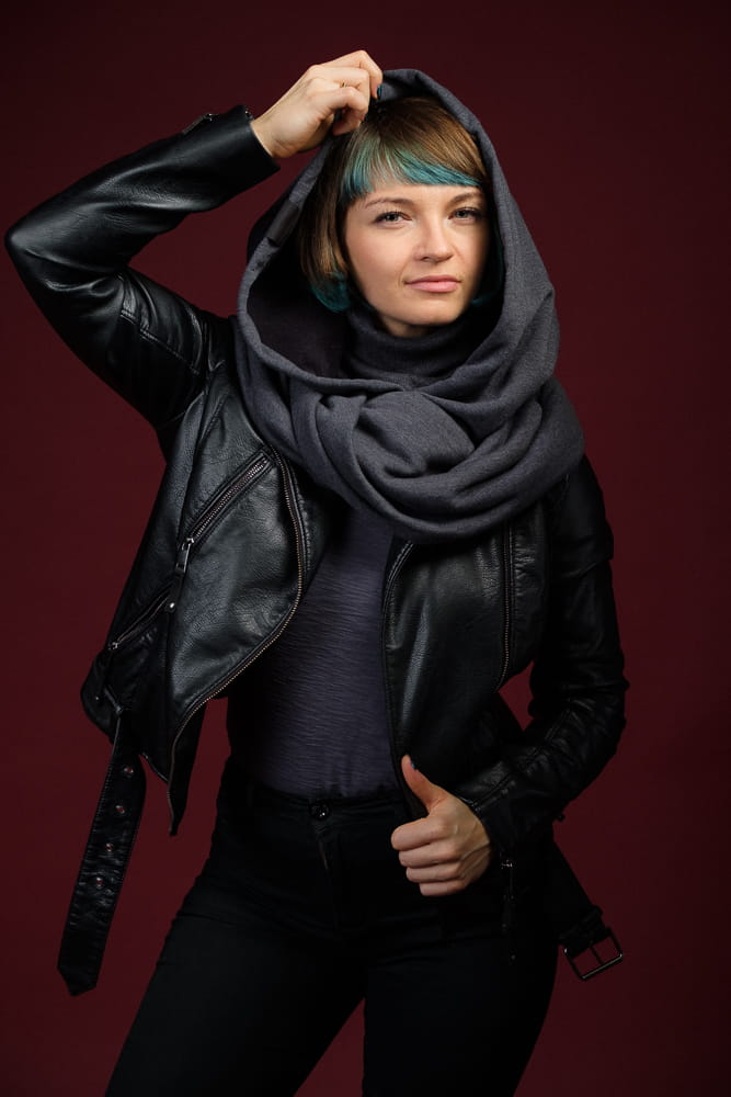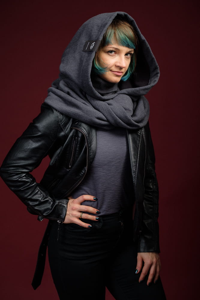 Stylowy komin z kapturem, który łączy elegancję z praktycznością, idealny dla każdej modnej Hultajki. Ten jednorozmiarowy model, pasujący także dla mężczyzn, wykonany jest z ciepłej dzianiny bawełnianej (92% bawełna, 8% elastan, gramatura 320 g/m²), z grafitowym golfem osłaniającym szyję w najchłodniejsze dni. Jako ciepły kaptur damski i kaptur na zimę damski, produkt sprawdza się przez cały rok – zimą i jesienią chroni przed wiatrem i mrozem, a latem idealnie pasuje na chłodne wieczory, dopełniając miejskie stylizacje. Jego głęboki ciemnoszary kaptur z grafitowym golfem dodaje nowoczesnego uroku, a elastyczność zapewnia komfort, szczególnie dla pań z kręconymi włosami.