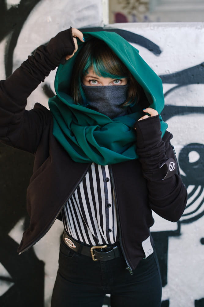 Zielony kaptur z golfem – Polski Design dla Hultajek z Pasją