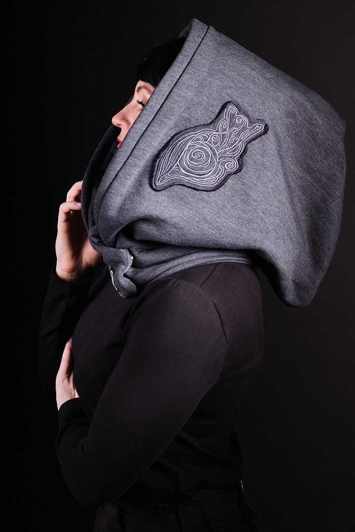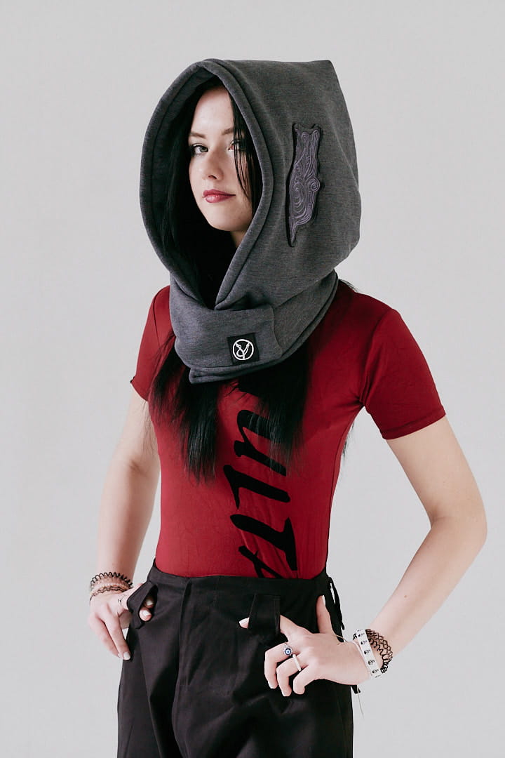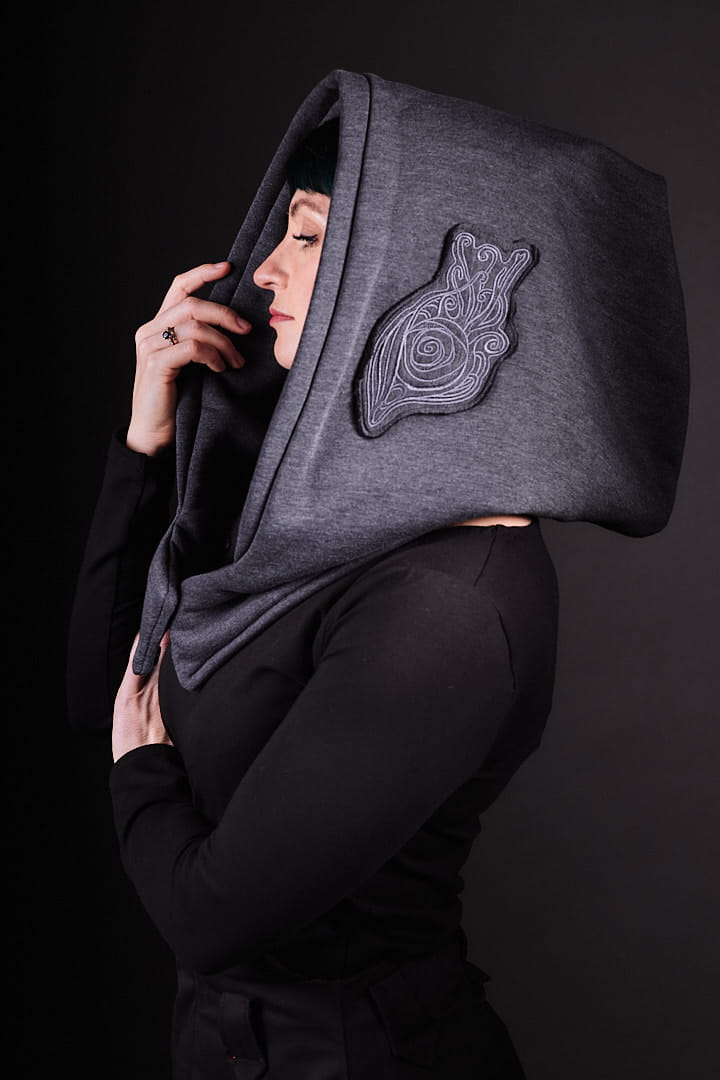 Kaptur Lorien Grafit dla Kobiet to styl i magia w jednym. Całoroczny kapturoszalik, ręcznie szyty w Polsce, doda Twoim stylizacjom elfickiego uroku. Zamów swój modny otulacz już teraz!