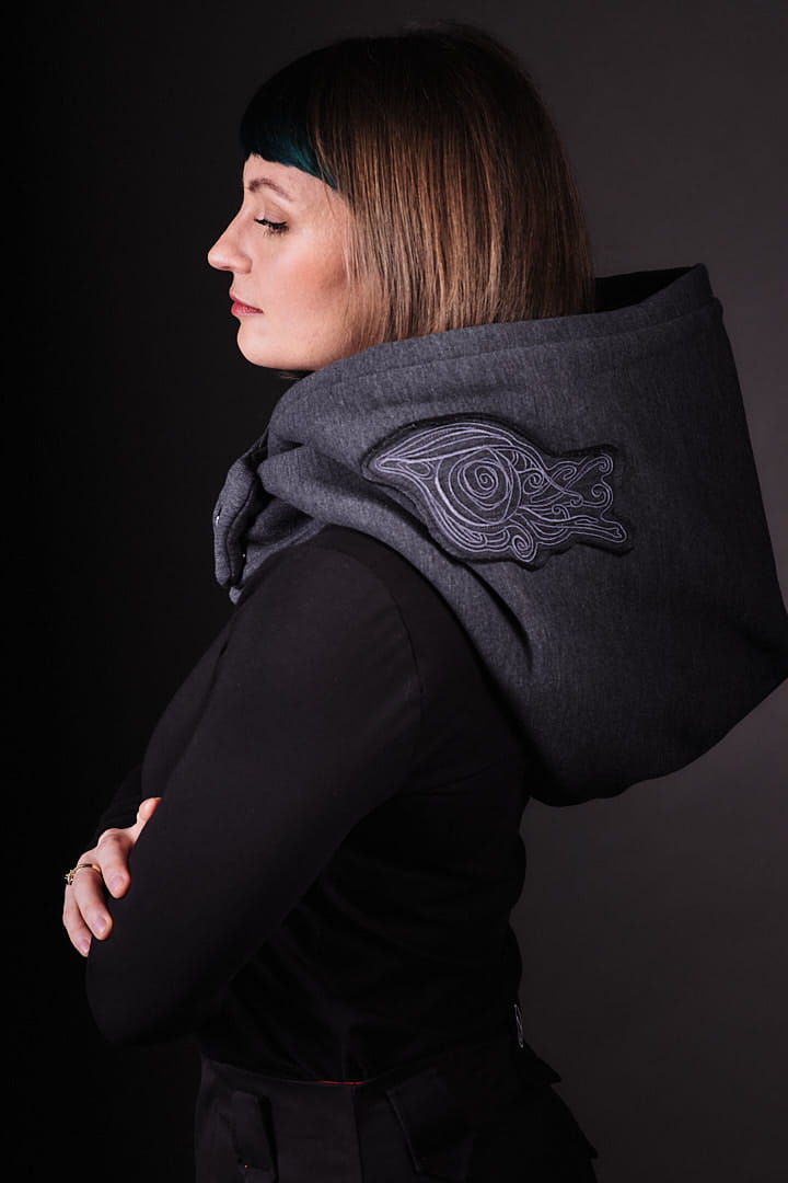 Kaptur Lorien Grafit wygląda jak uszyty przez elfy! Zainspirowany Tolkienowskim Lothlórien, ma elficki haft, który dodaje mu baśniowego klimatu. Dla fanek fantasy i nie tylko!