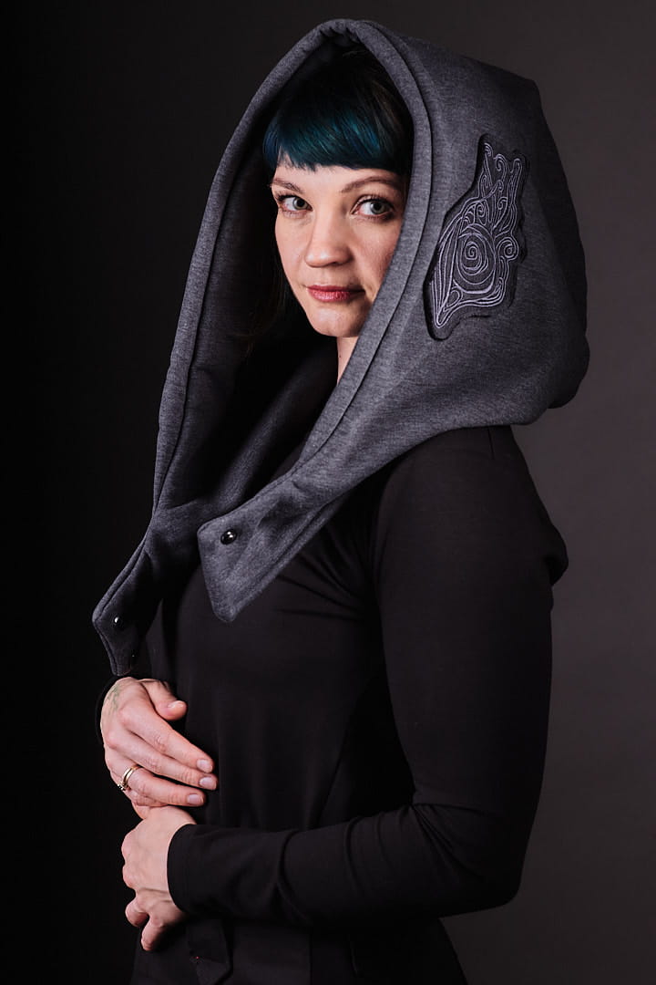 Kaptur Lorien Grafit dla Kobiet – Baśniowy Otulacz od Hultaj Polski