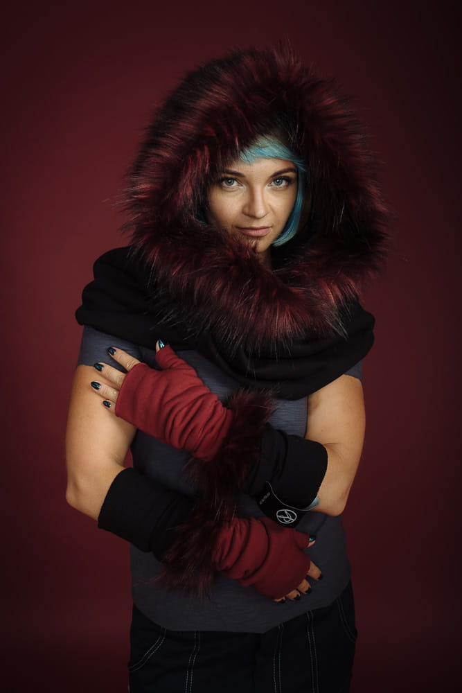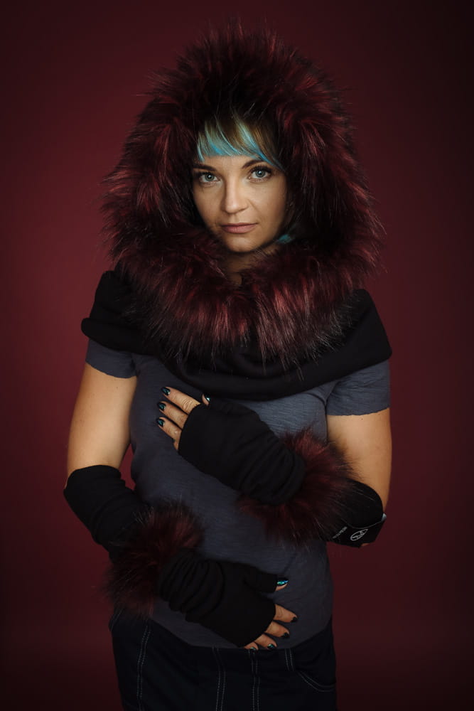 Uwaga – kaptur dobrze jest bardzo mocno wytrzepać przed założeniem, bo sztuczne futro lubi na początku gubić włoski.
