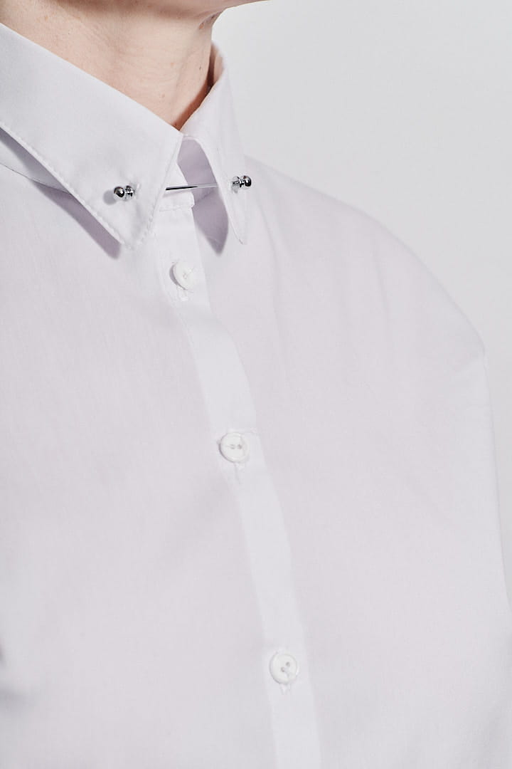 Ręcznie szyta biała koszula męska ze szpilką