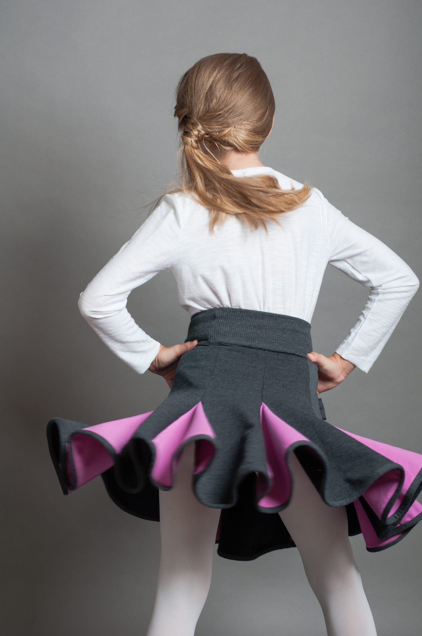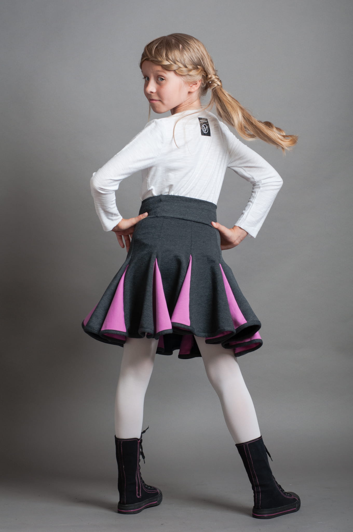 Spódniczka sprawdzi się doskonale w szkole i w przedszkolu. Jest miękka i wygodna, idealna do zabawy na boisku czy na placu. Przyda się też na taneczne treningi. Mieniąca się kolorowymi klinami, pięknie prezentująca się w obrocie. Każda młoda Hultajka powinna mieć taką w swojej szafie.