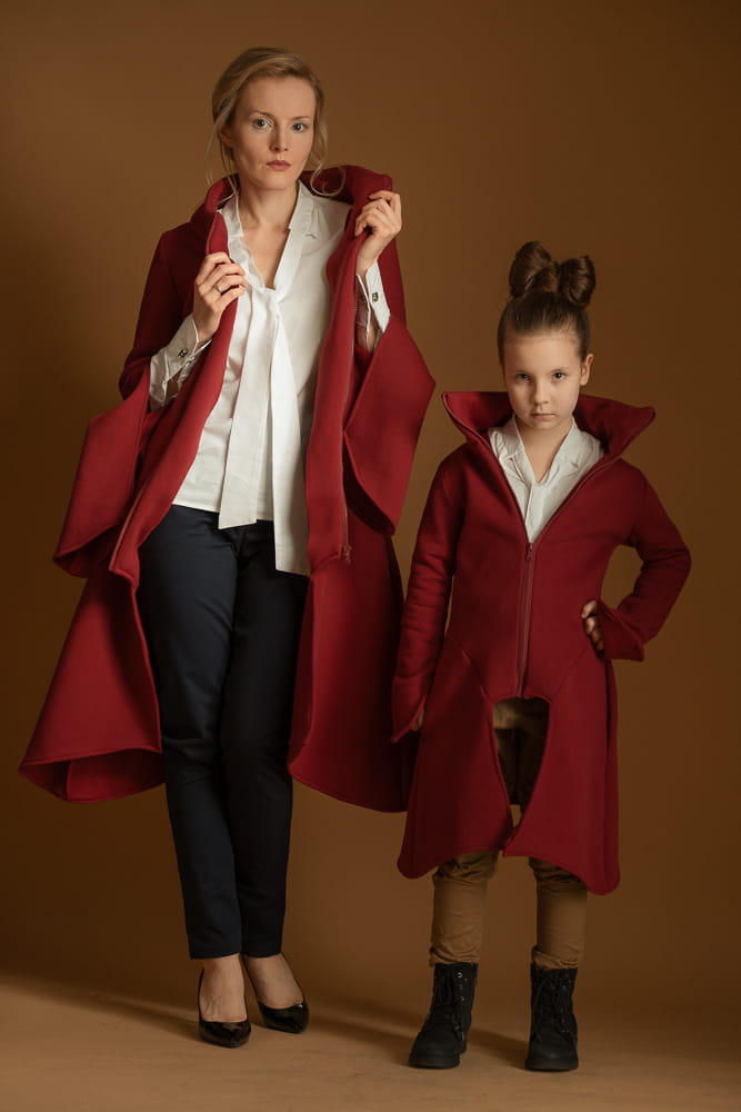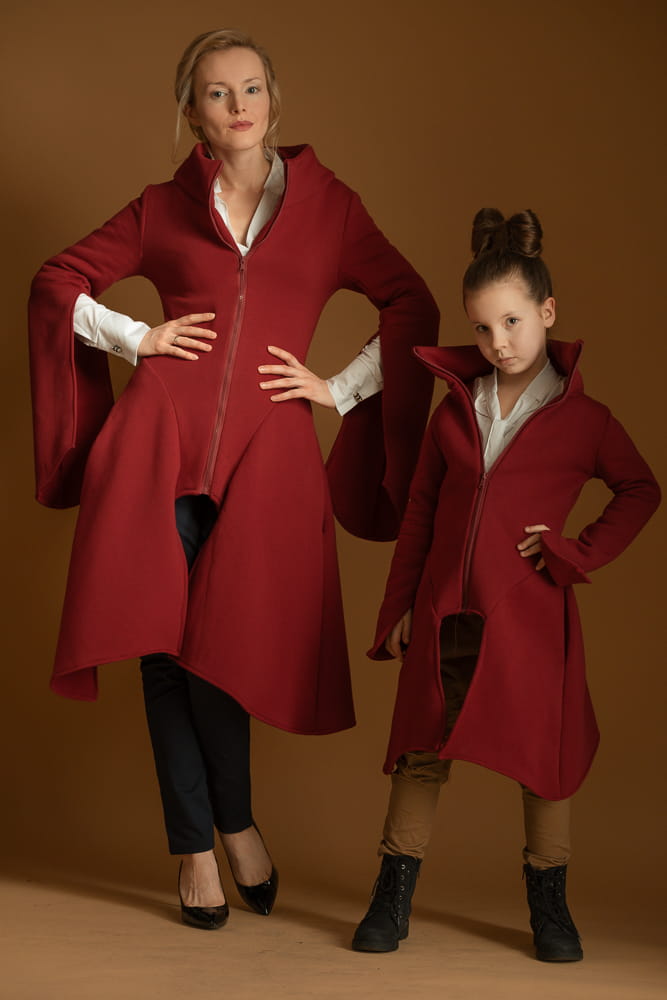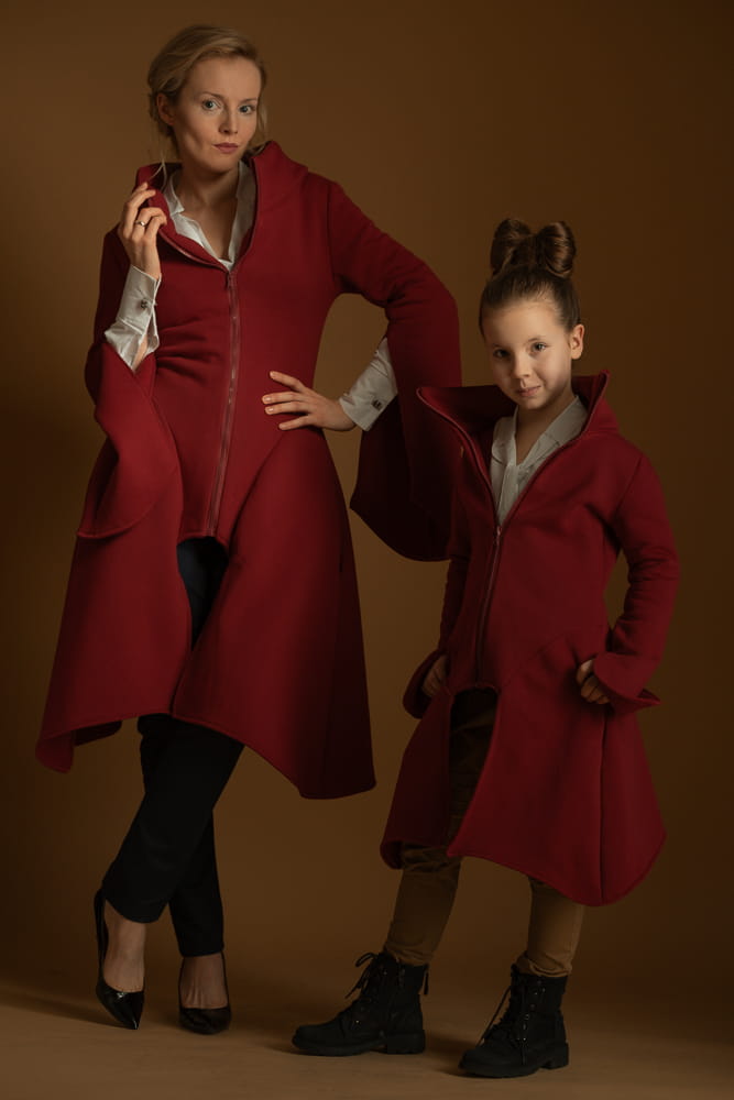 Płaszcz Wichrun bordo Komplet Mama/Córka