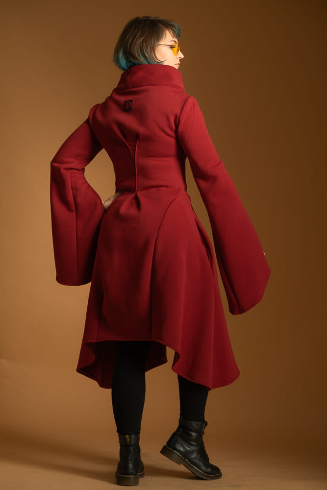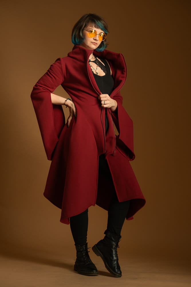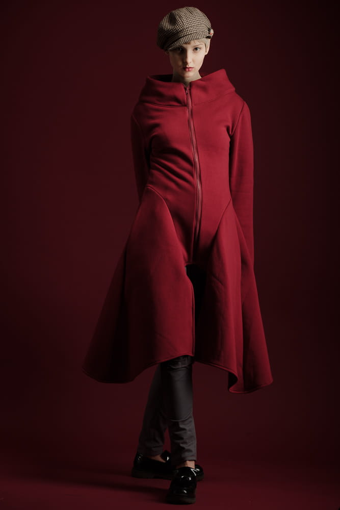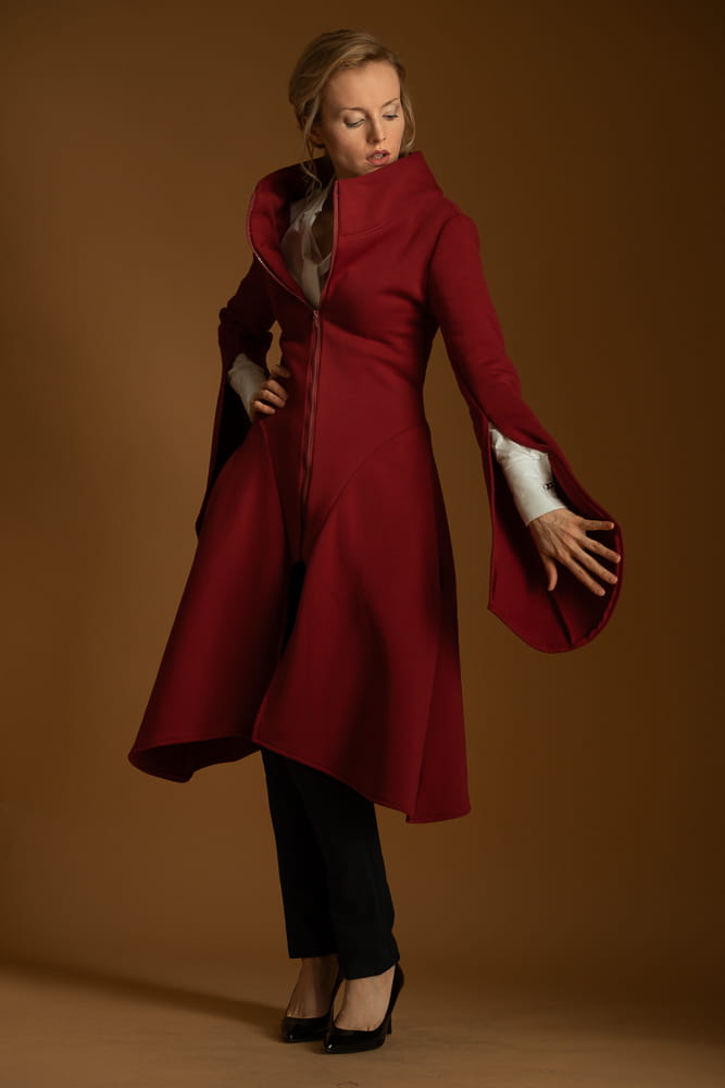 Buntownicza elegancja nie zna wieku, a w tych płaszczach z pewnością nie zostaniecie niezauważone. Elegancki bordowy kolor połączony został z rozkloszowaną formą inspirowaną kształtami baroku i art deco.