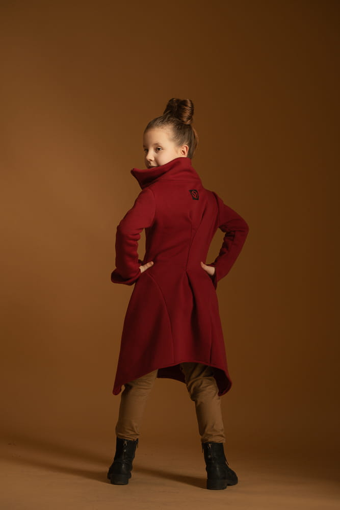 Rozkloszowany płaszcz dzianinowy w pięknym, bordowym kolorze dla dziewczynki