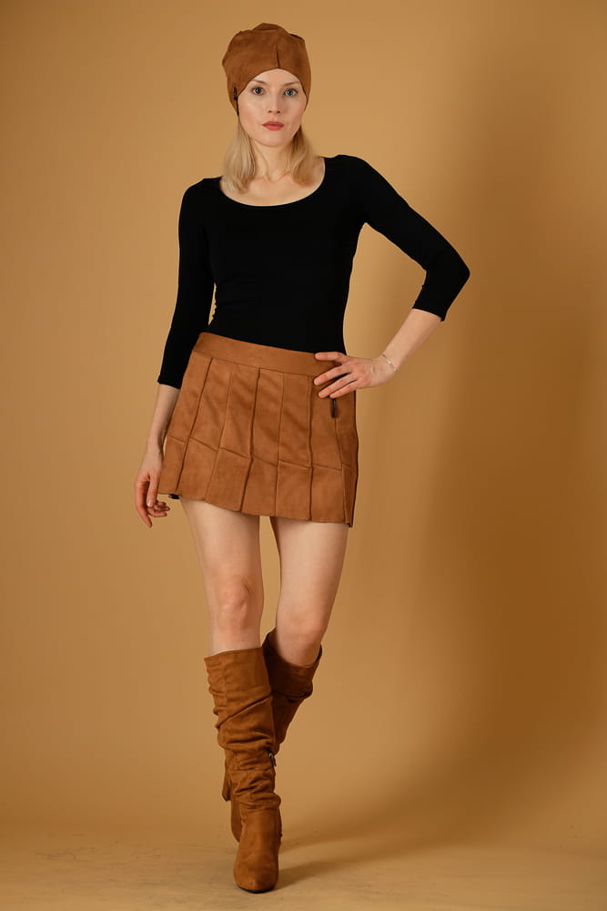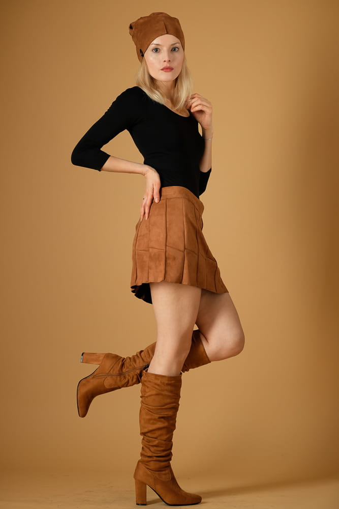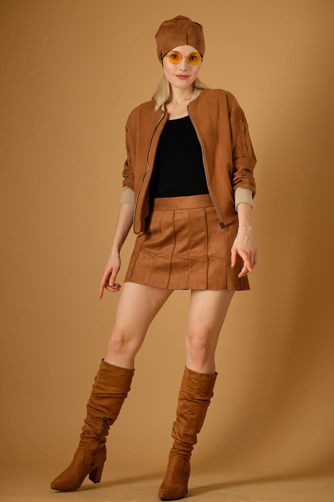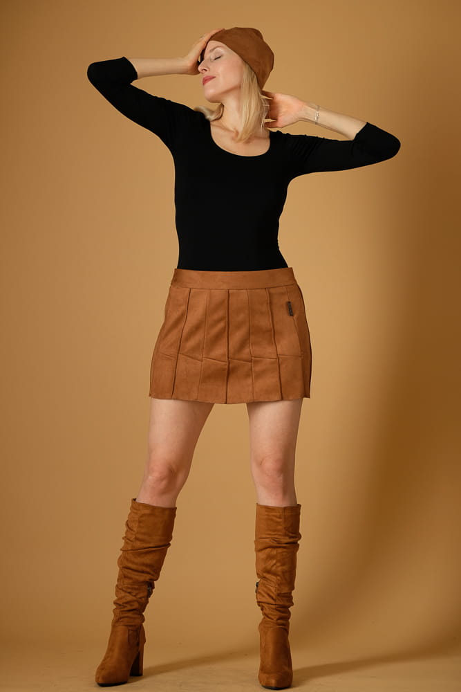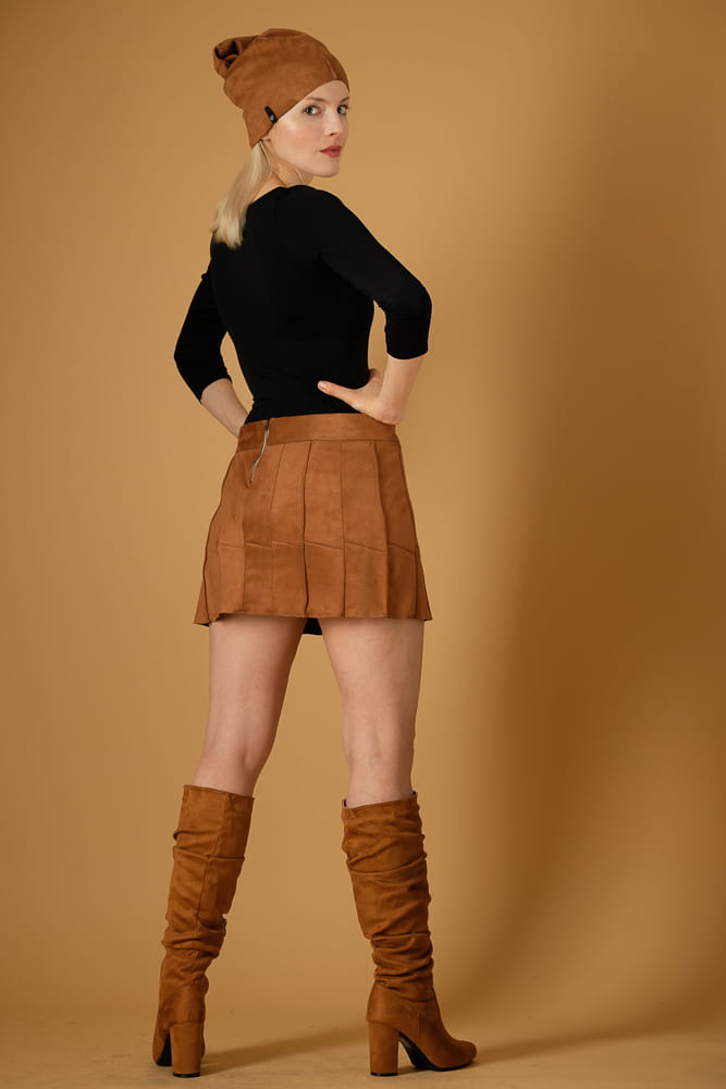Spódnica mini z dzianiny typu zamsz w kolorze ciepłego brązu