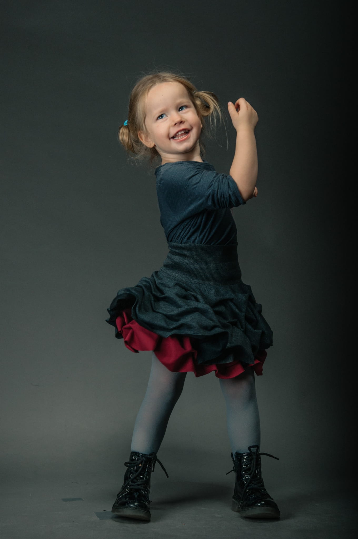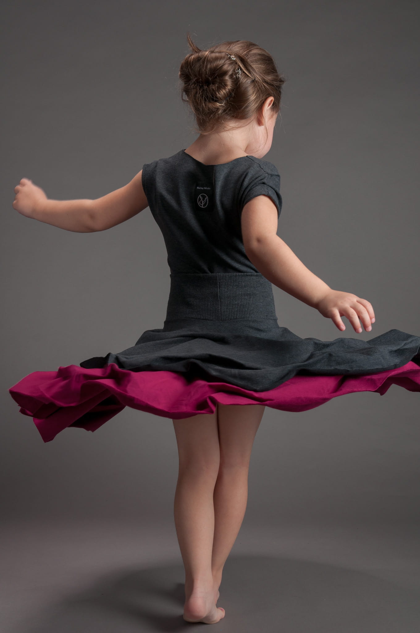 Bardzo elastyczny ściągacz w talii. Spódniczka występuje w trzech rozmiarach. Wersja dłuższa pasuje też na mniejsze dziewczynki – będzie rosła razem z dzieckiem i po jakimś czasie zmieni swoją funkcję ze spódniczki długiej na krótką.