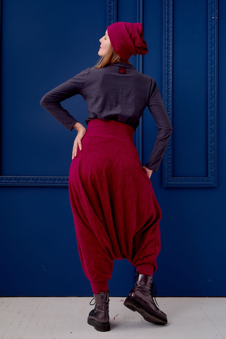 Spodnie Haremki Bordowe z Ciepłej Dzianiny Warkocz – Hultaj Polski