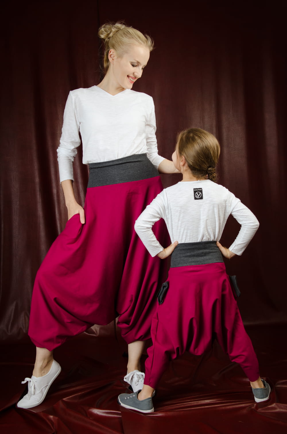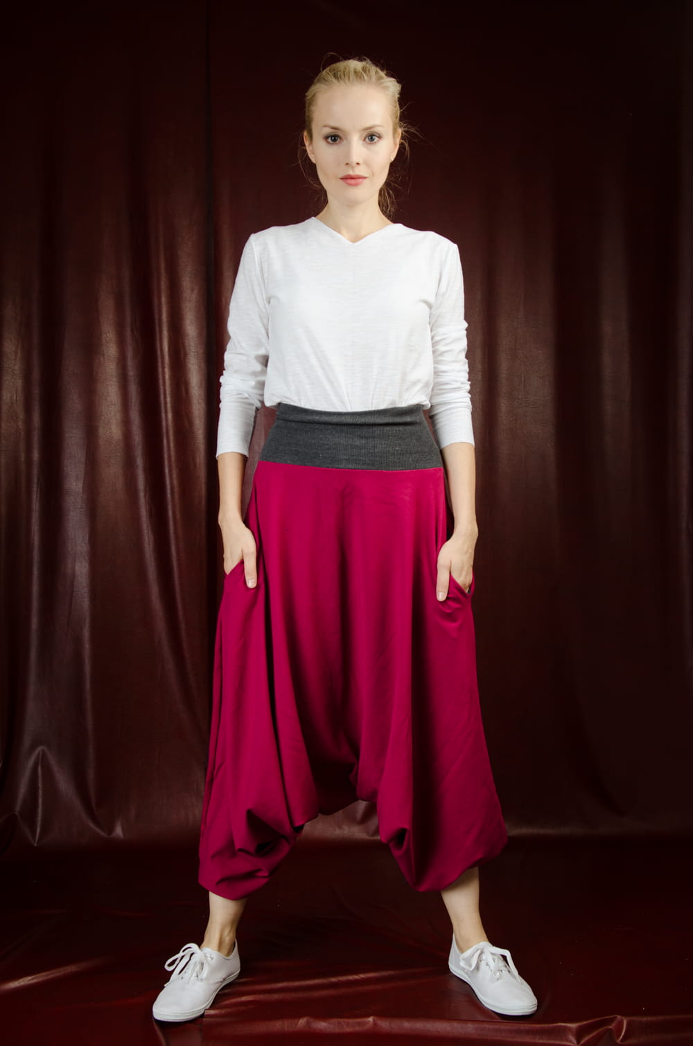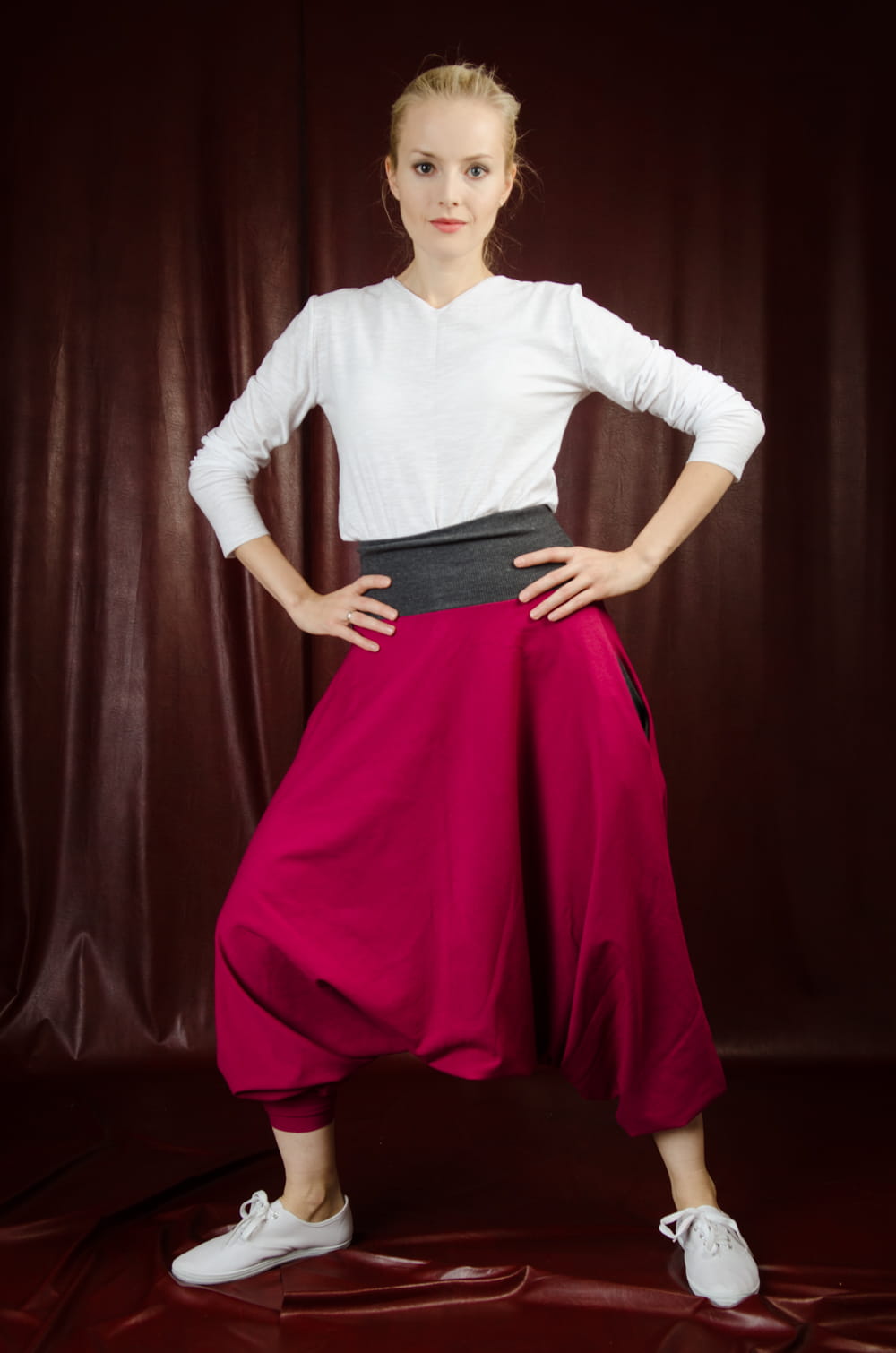- Codzienny look: Połącz burgundowe haremki z czarną bluzką i botkami – idealne na jesień.