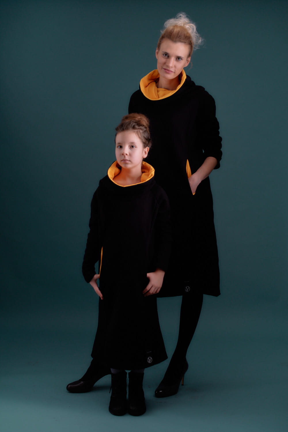 Sukienka Olga Czarna z mandarynką Komplet Mama/Dziecko