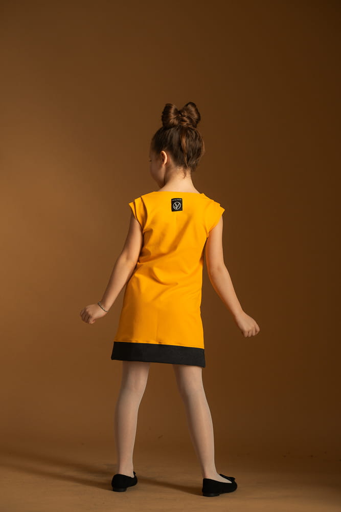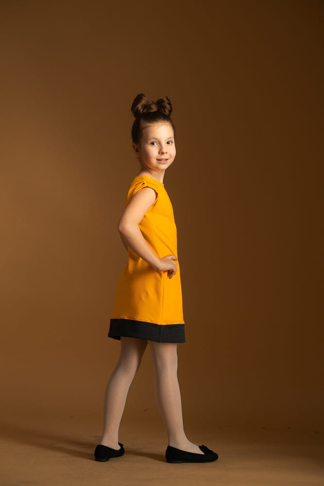 Sukienka damska ma kształt klepsydry, dziecięca uszyta została w kształcie litery A.